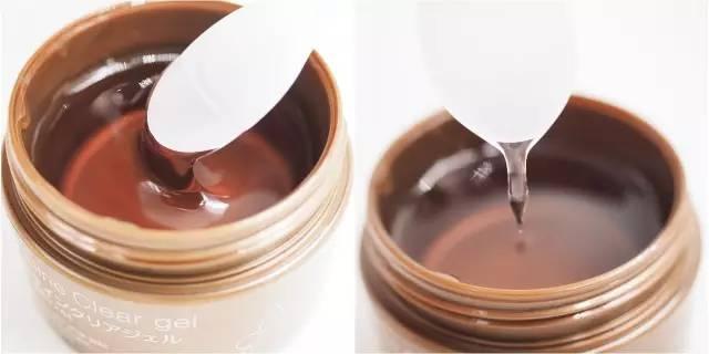 颈霜是浅色果冻一样的啫喱质地,看起来跟睡眠面膜很像,但是用勺子挖下去的时候又会觉得很有弹性,具有记忆功能哦,挖一块出来,不一会表面就会变平整了。