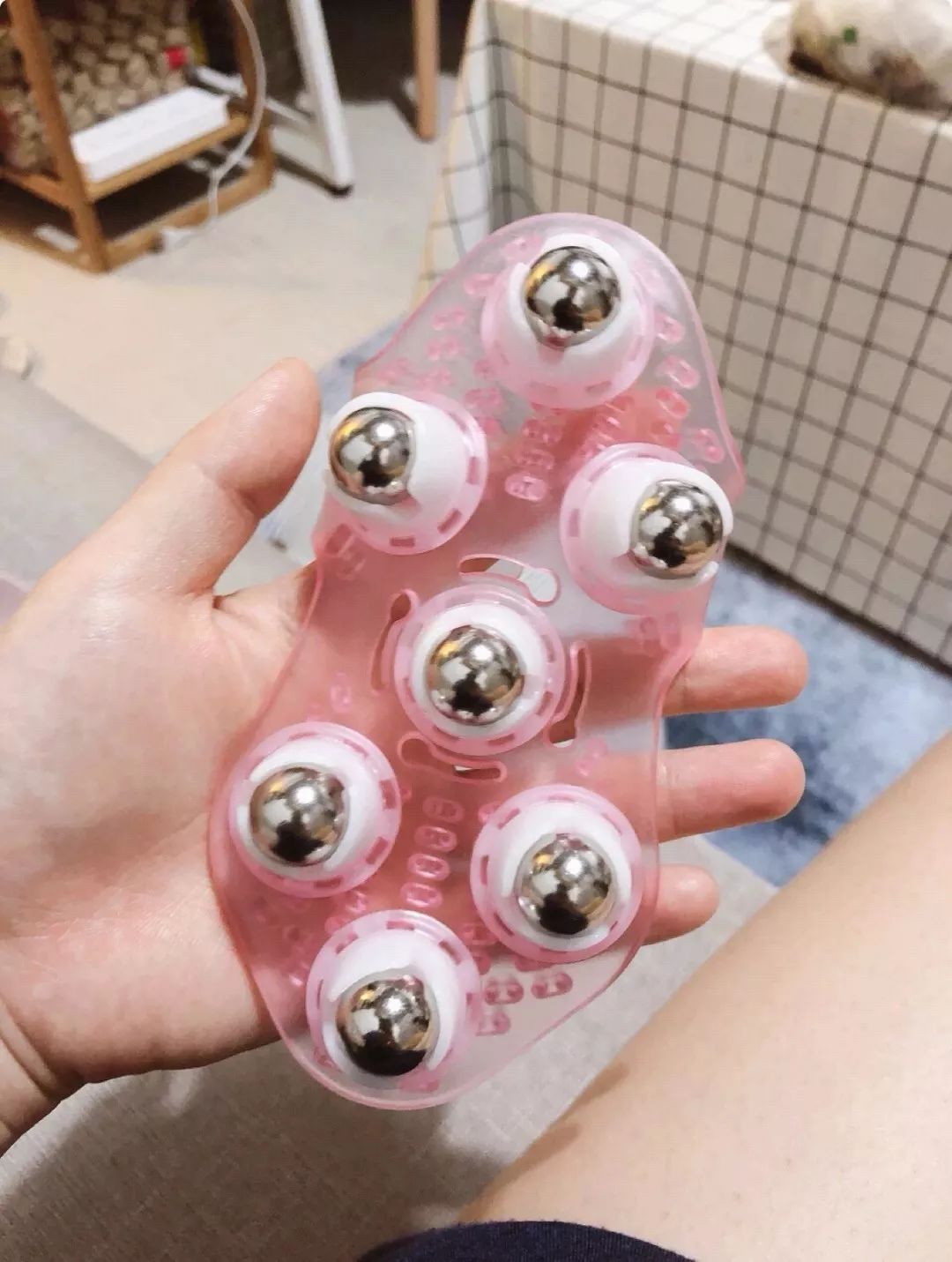 这款按摩器设计的非常合理,主要就是由7颗滚珠沿身体滚动,这个滚珠是可以360°旋转的,很顺滑,力度刚刚好,不会卡肉夹肉。
