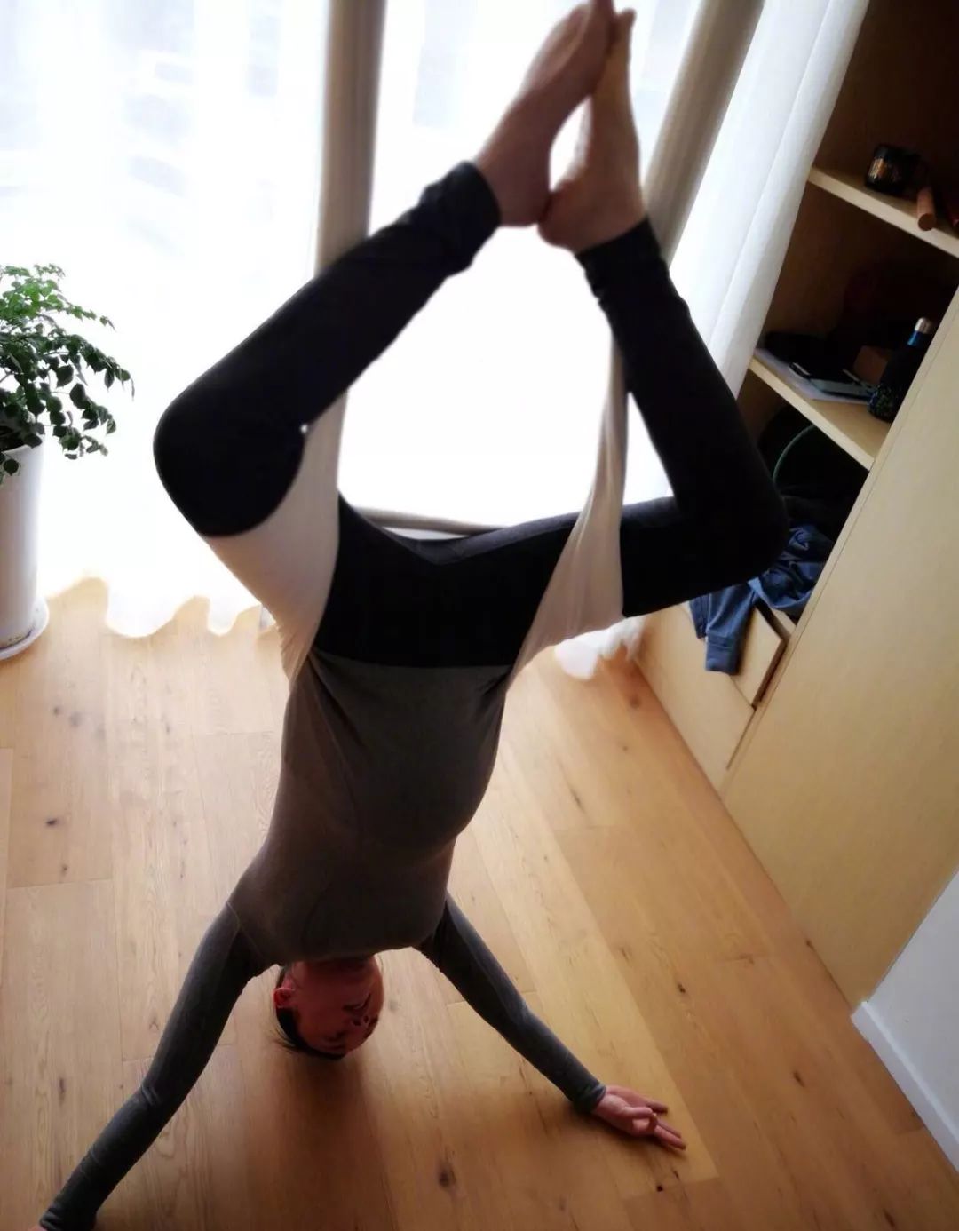 这时候的她快到预产期了,但是依旧身轻如燕,这腿细的不看肚子以为是20几岁的少女。