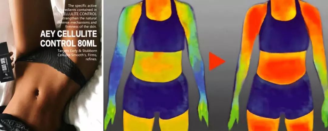 在节目现场的瘦身实验中,我们采用红外线观察人体在涂抹瘦身喷雾之后的体温变化,明显看出涂抹的左侧温度高于没有涂抹的右侧?