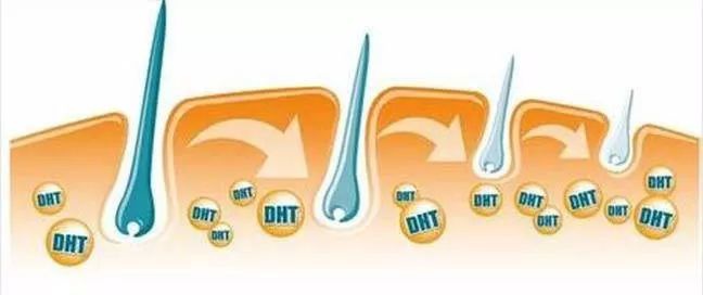 我们常说的健身导致的脱发,属于雄激素脱发,俗称雄脱。这种脱发是因为睾固酮与还原酶结合后生成雄性激素DHT,DHT过多会导致毛囊逐渐萎缩,从而诱发并加剧脱发。