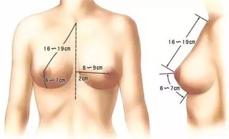 美胸黄金标准,?乳头突出、大小为乳晕直径的3/1,?乳房丰满、匀称、柔韧有弹性