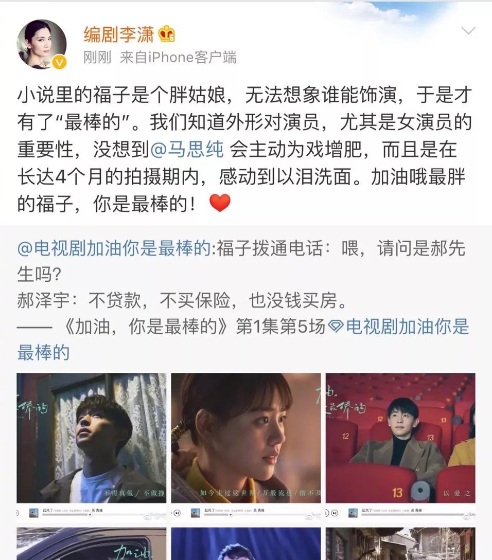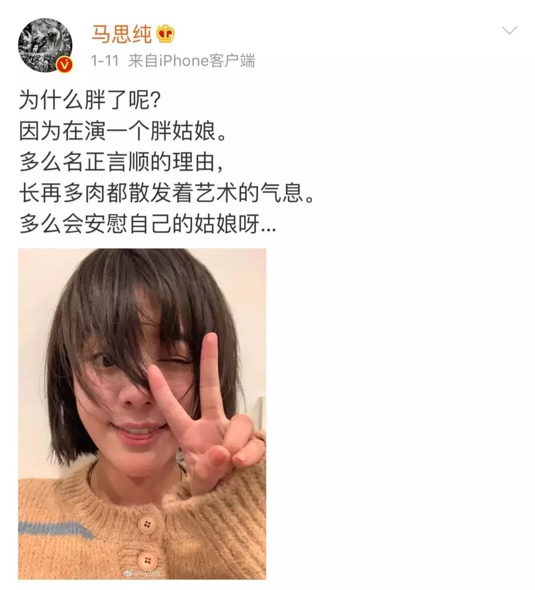 ▲之后马思纯自己就在微博说明自己是为戏增肥了。