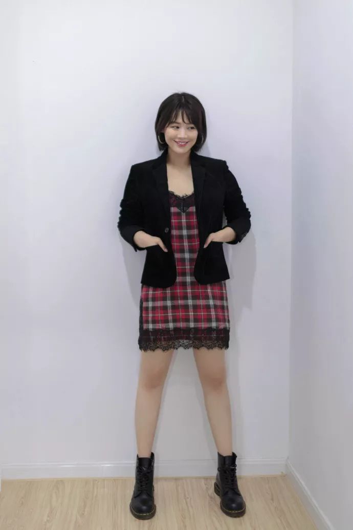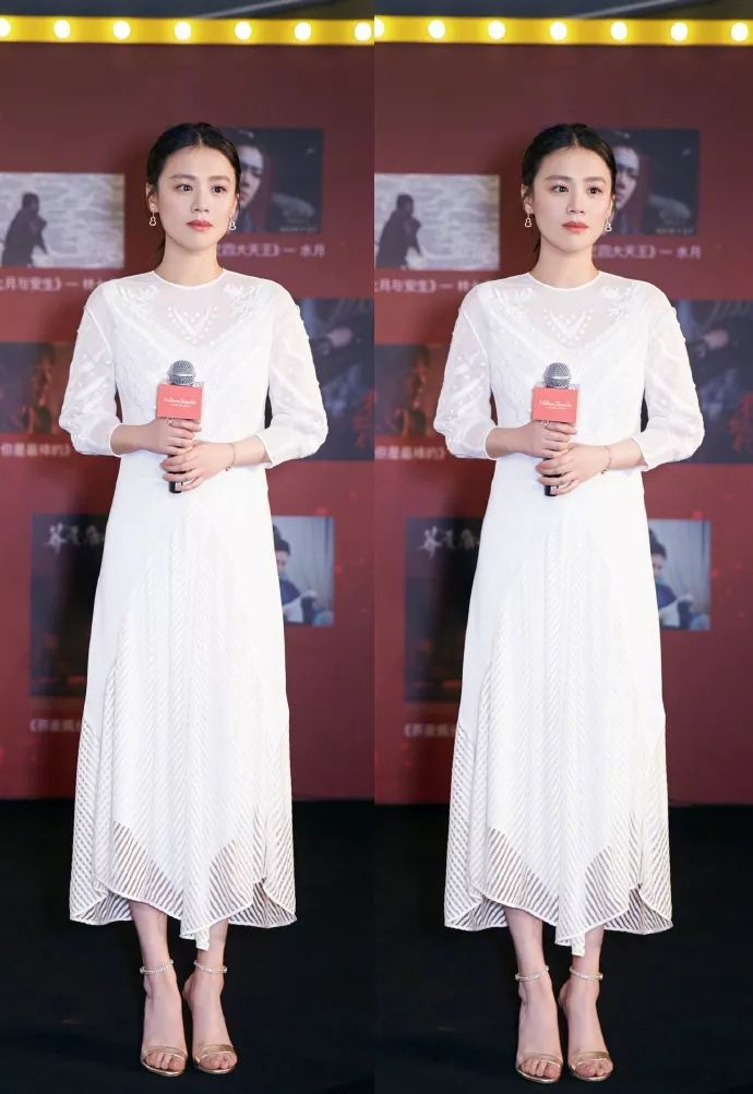 ▲黑色拼接休闲西服外套+白T+黑色西裤+高跟鞋的搭配,完全看不出马思纯为戏增肥了15斤。