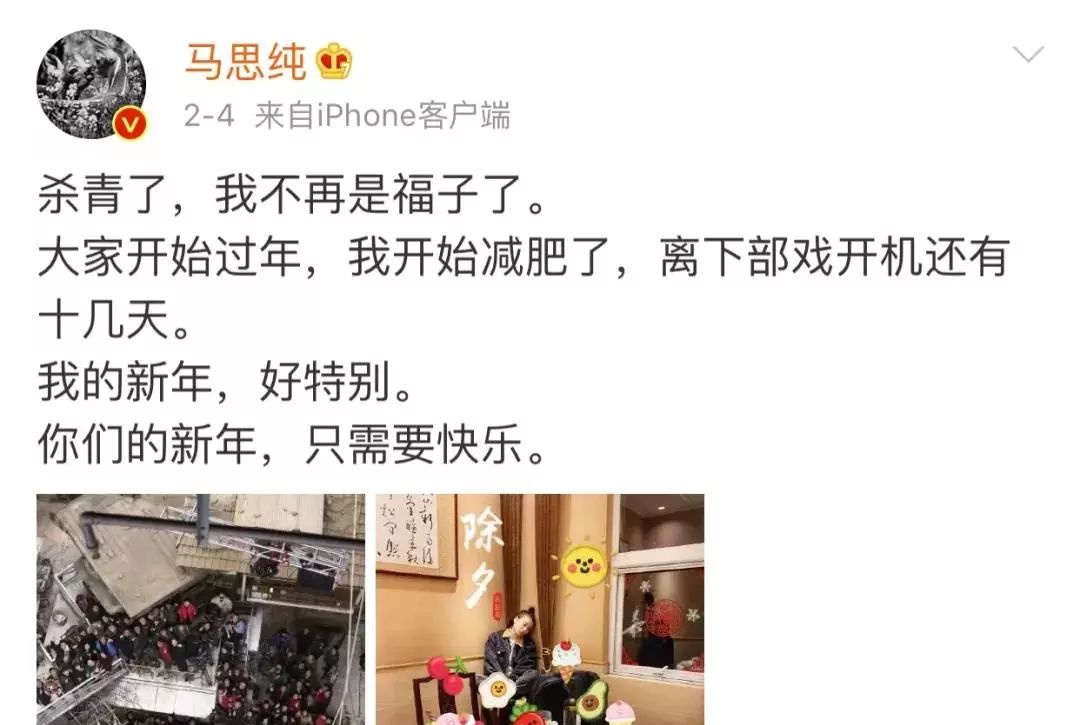 ▲戏杀青了,终于可以开始减肥了,别人的新年,小马姑娘的减肥月。
