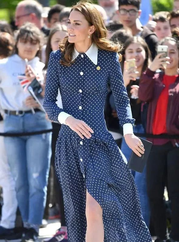 凯特这次就彻底的叛逆了一次,在布莱切利园这次活动上,凯特王妃穿了一件蓝色的波尔卡圆点长裙,不过她这条裙子的风格和以往不一样,因为这次的裙子下面是开叉的,从她穿着的这条裙子中,我们可以看出她的腿不是一般的漂亮。